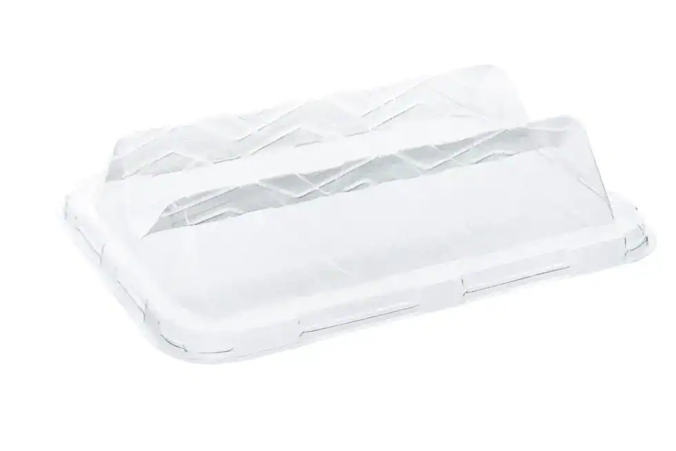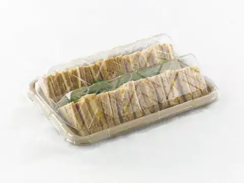 Designed specifically for displaying triangular sandwiches on the 35x24cm rectangular platter for both rPET and Bagasse.
