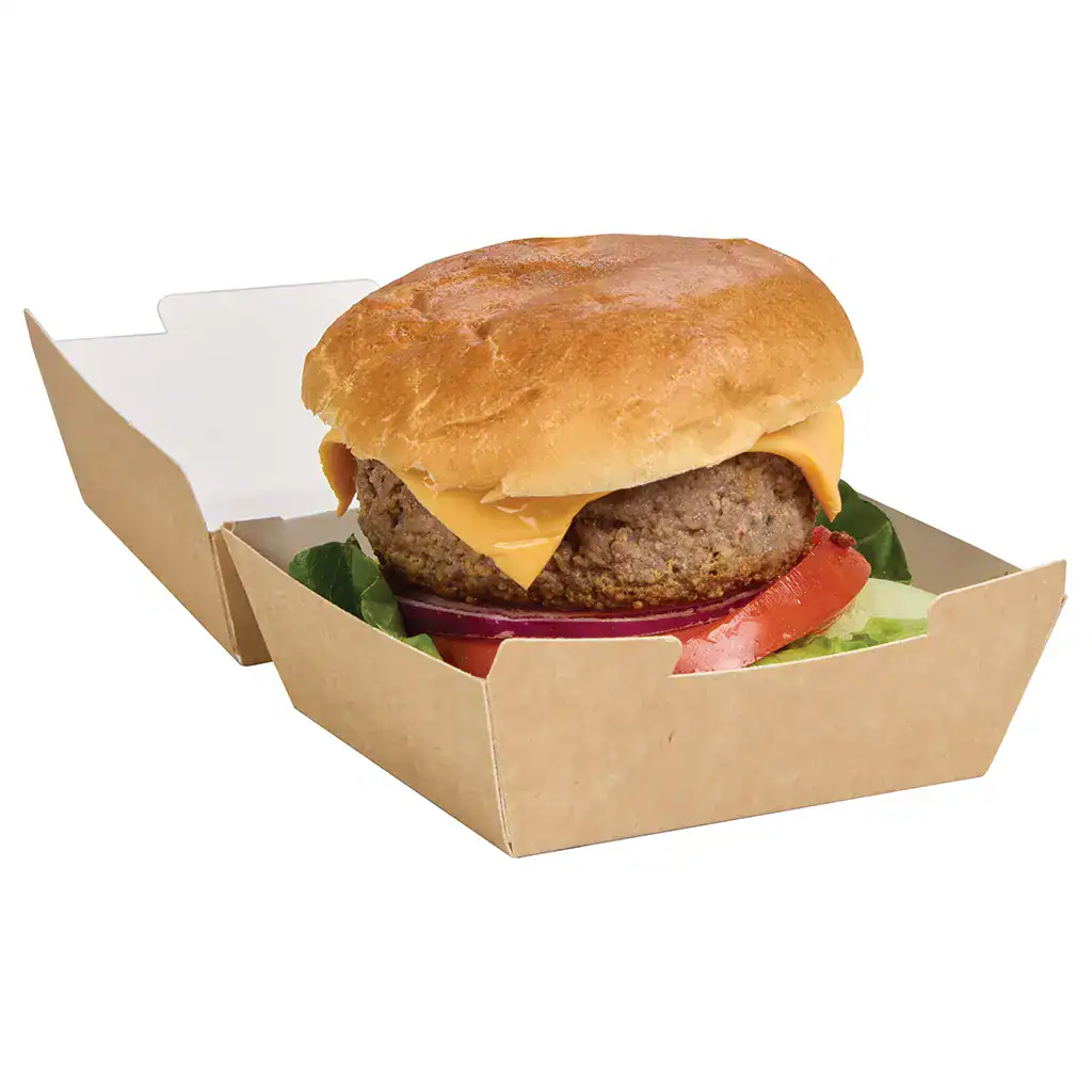 If it’s going in a box, it needs to stay hot, stay intact, and look good on the way out. The medium kraft clamshell burger box does exactly that.