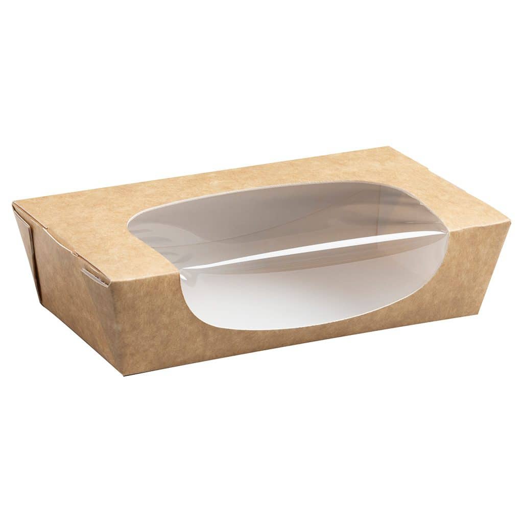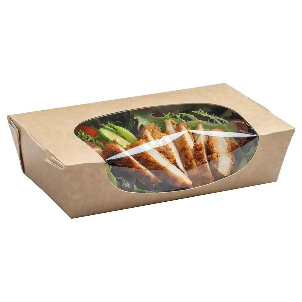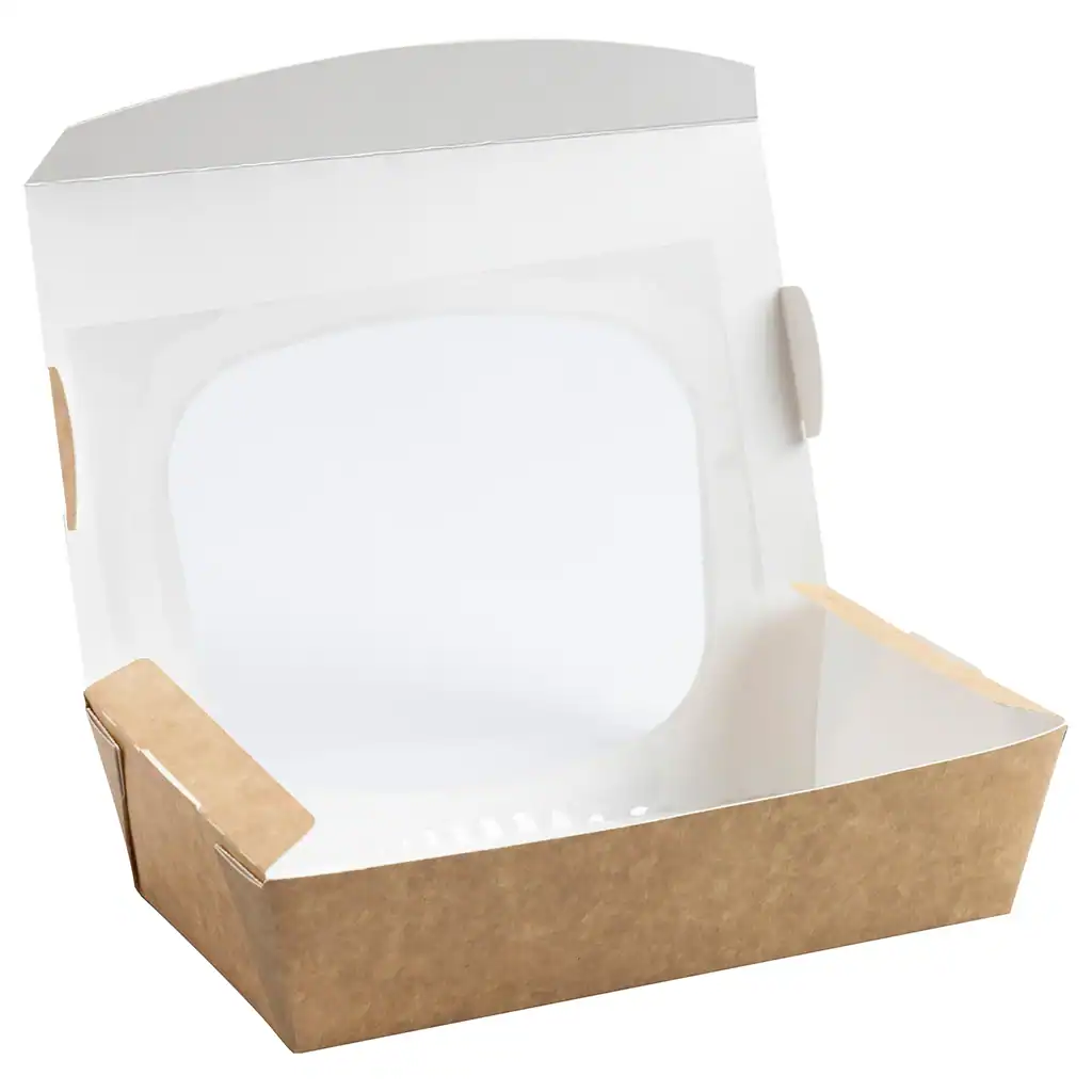Kraft board with PE-coated interior keeps everything fresh and contained, and the PET clear window means customers can see exactly what they’re getting before they’ve even asked.