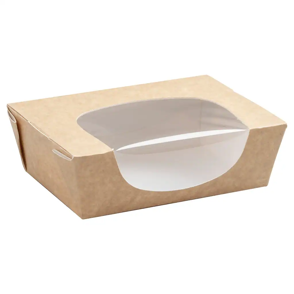Kraft board construction with a PE-coated interior keeps contents fresh and grease-resistant, while the PET window does the selling for you.