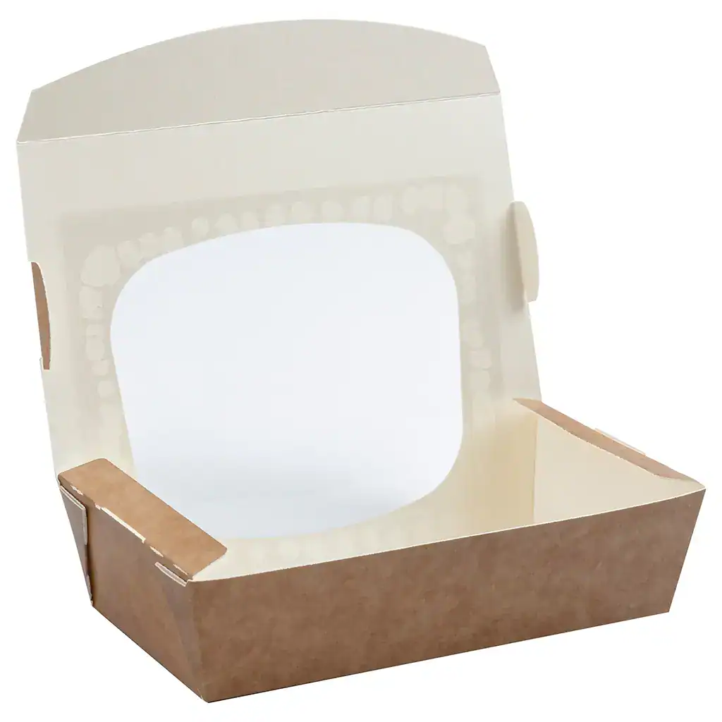 The Zest™ Large handles loaded salads, pasta dishes and rice bowls with ease – the over-edged clear window with UV protection keeps everything looking fresh, and the push tuck closure with quick release tab means fast filling and effortless opening for customers.