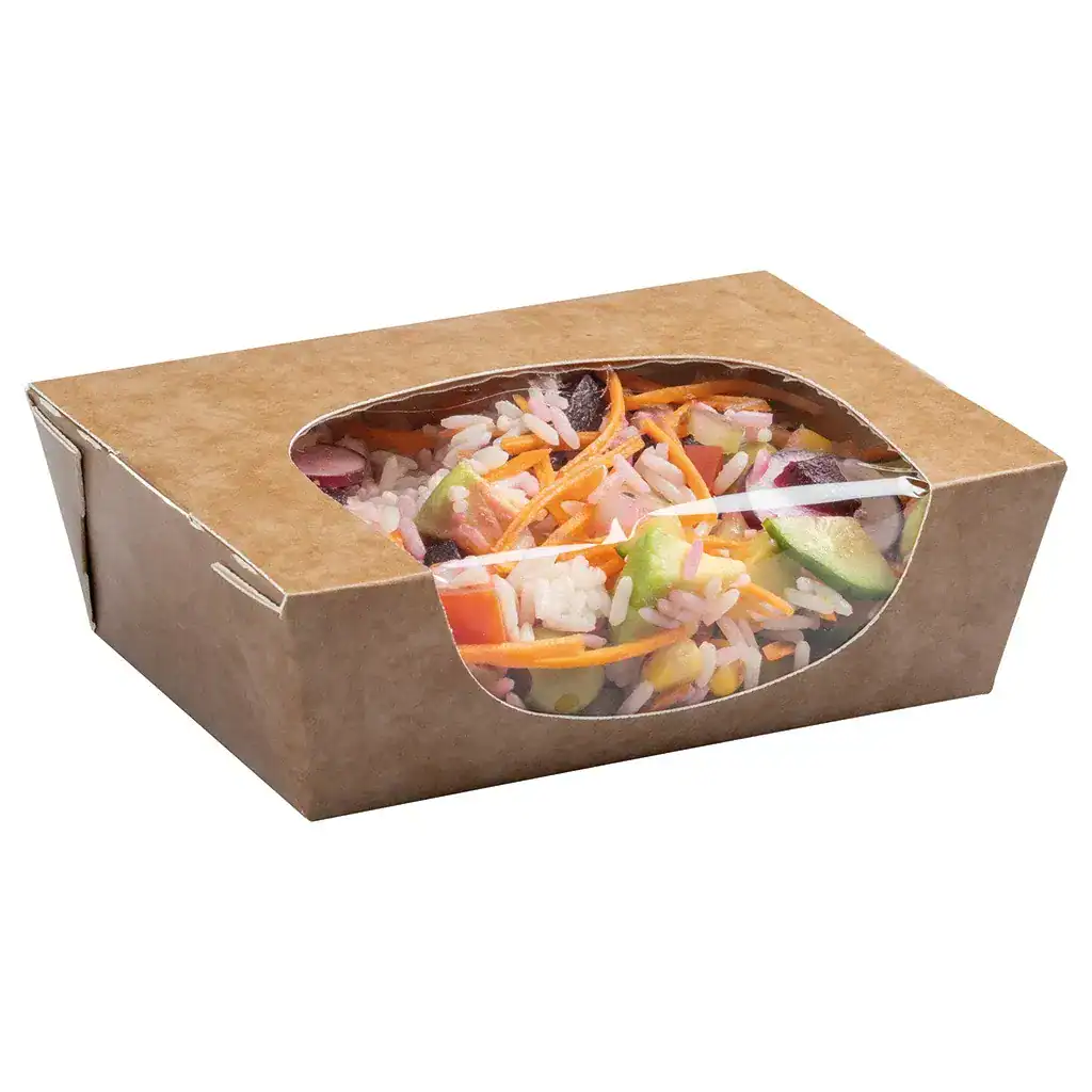 Zest™ 825ml Medium Kraft Salad Box with Window – Case of 250
