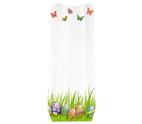 Printed with vibrant decorated eggs nestled in grass and butterflies above, these clear polypropylene bags are made for filling with chocolate eggs, sweet treats, or confectionery novelties — perfect for grab-and-go Easter gifting.