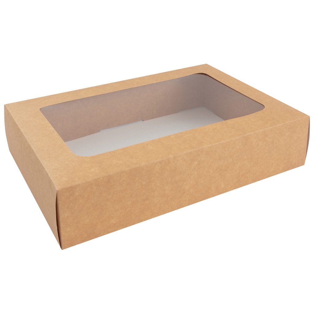 Kraft Medium Platter Box with Window is designed for generous portions – perfect for sandwich quarters, wraps, traybakes, and grazing selections.